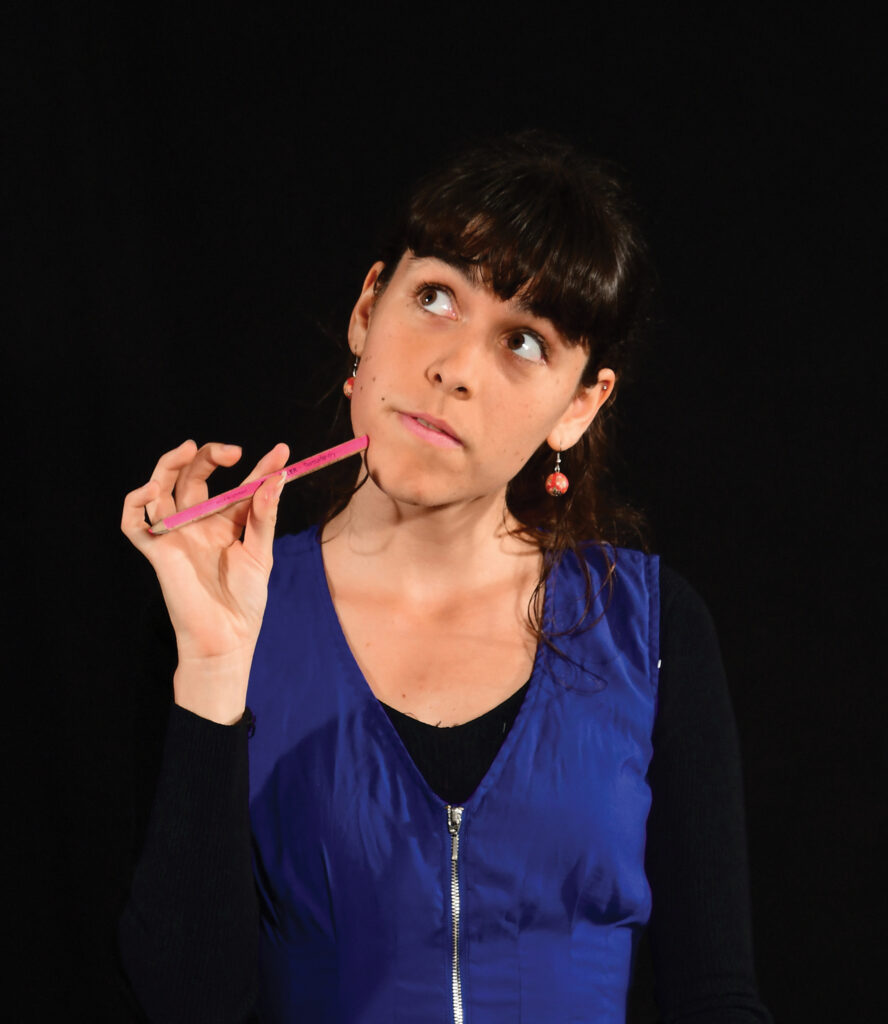 É ilustradora, animadora e realizadora de animação. Comunica através do desenho, transformando conceitos e histórias em universos visuais.