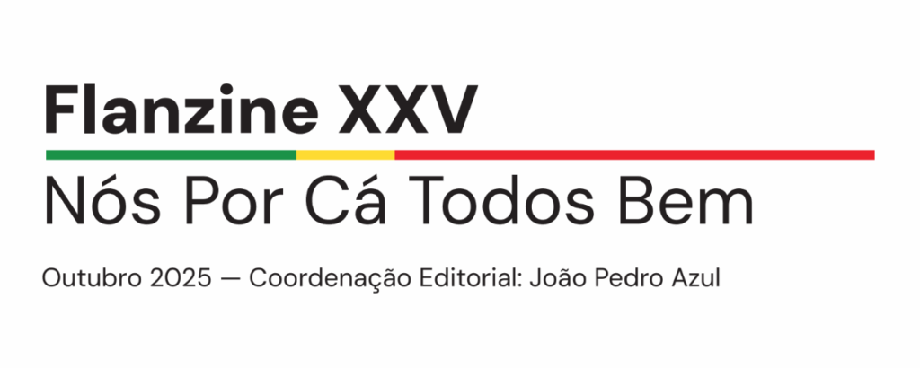 Partindo do título do filme de Fernando Lopes, que faria 90 anos em 2025, e no qual teve a colaboração literária de Alexandre O’Neill, nesta edição da Flanzine, olhamos para o nosso cantinho e as suas vicissitudes e devolvemos o gesto com uma revista que não é bem uma revista, mas sim uma exposição de 25 posters de 25 autores e uma edição limitada em canudo para leitores que só lêem os bonecos e dispostos a pagar 25 paus pela arte&engenho de tal empreitada.